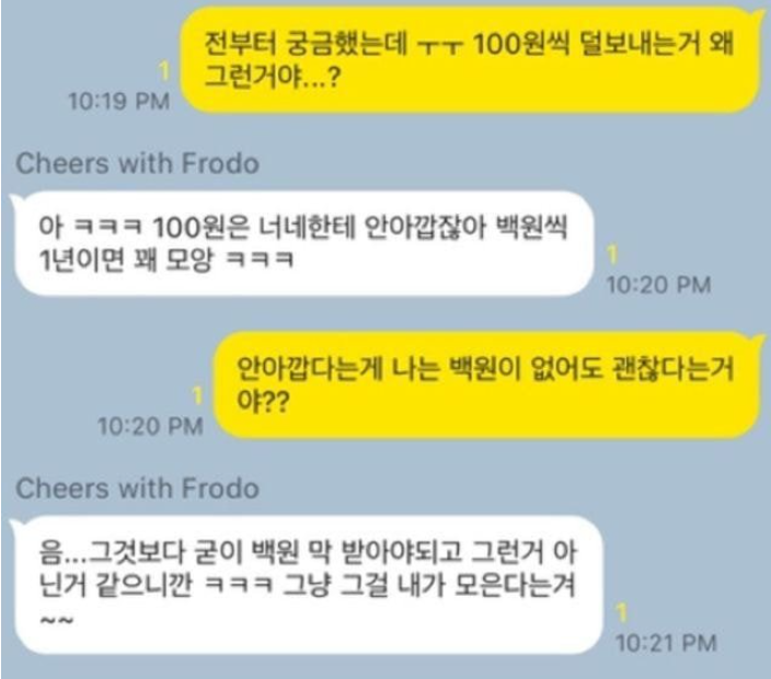 와 저 100원을 받으세요 보내는거 찐이네 ..