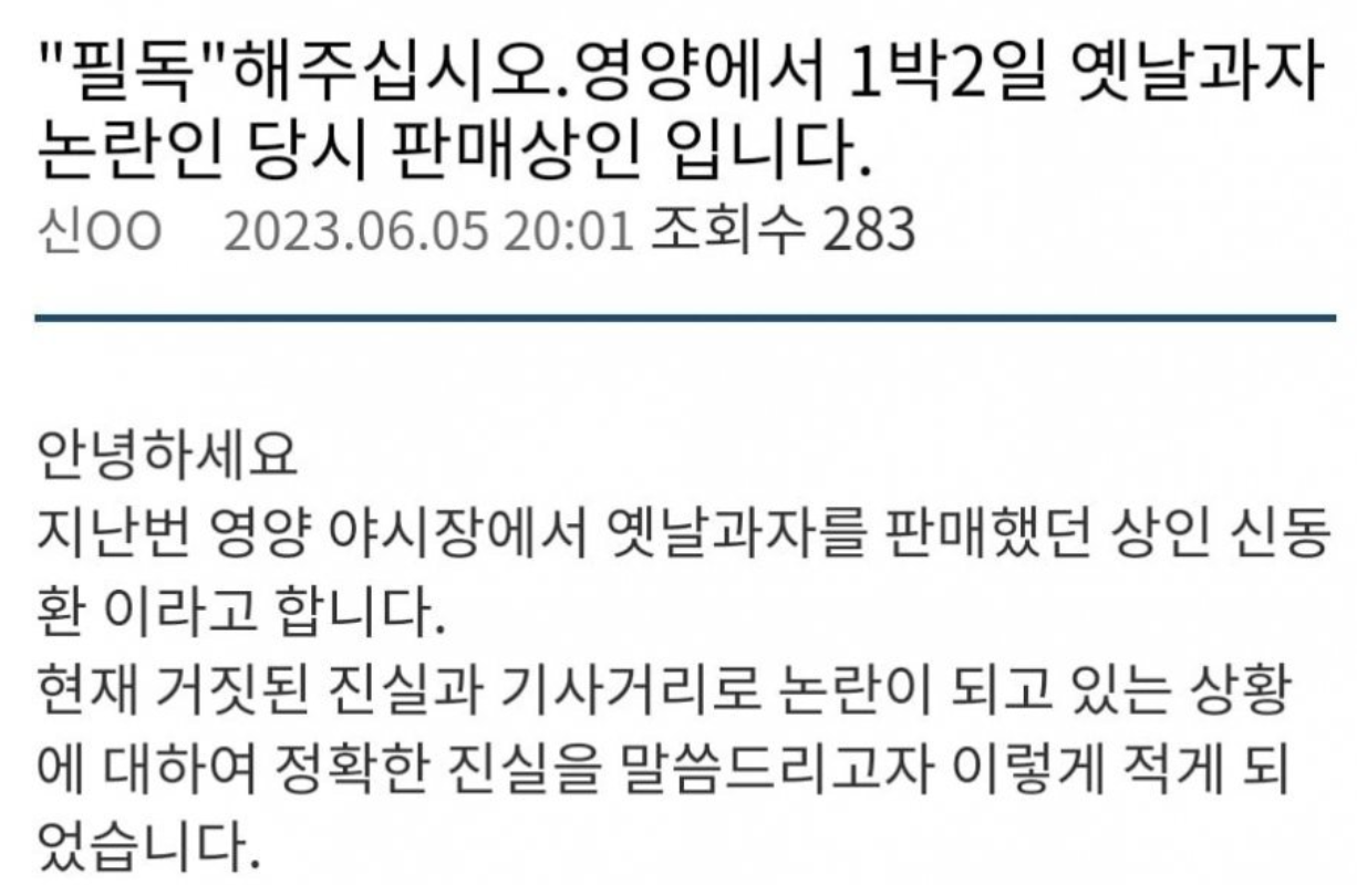 +1박2일 바가지 과자 판매자 해명글