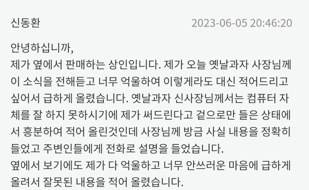 잘못된 내용 올려서 죄송하다고 함