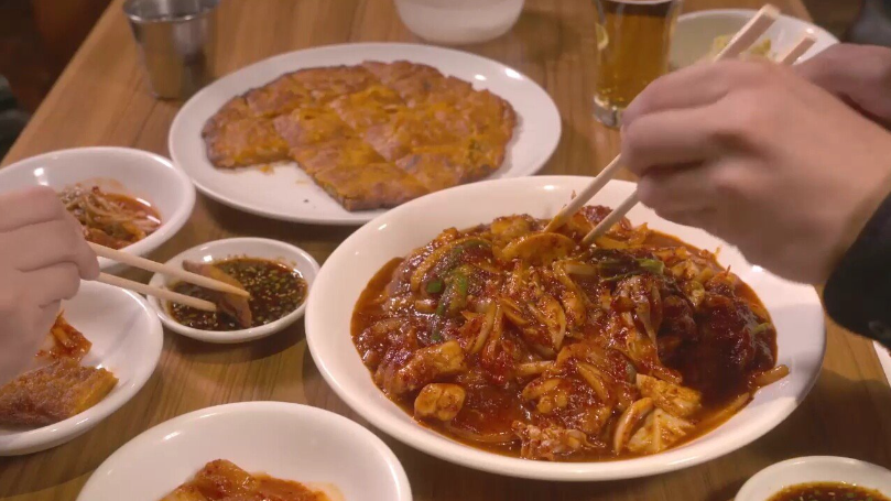 한국 음식 다양하게 맛있다고 만족하는 사키코