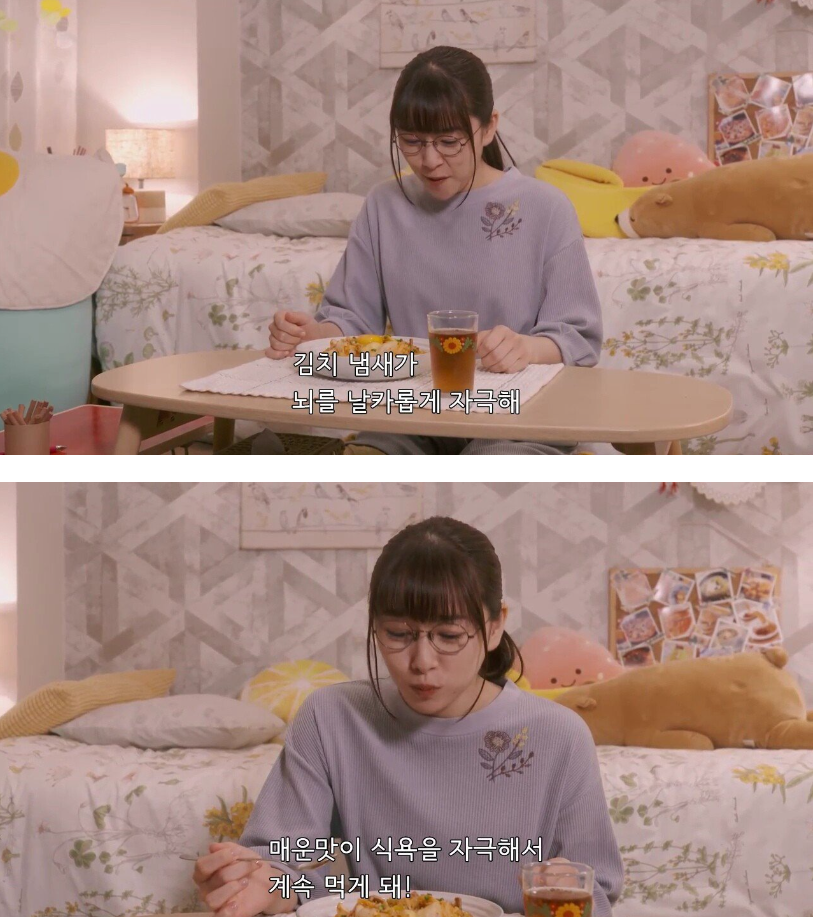 김치 맛있게 먹으니 너무 매운김치는 못먹는다는 사키코