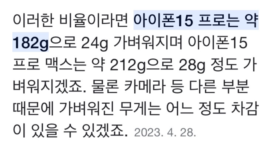 이전 아이폰 14 프로보다 가벼울 것으로 보고있음