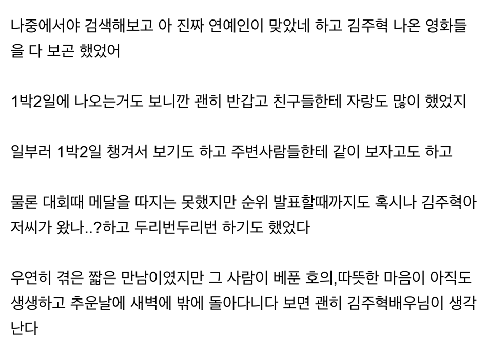 작은 인연도 소중하게 생각했던 배우 김주혁