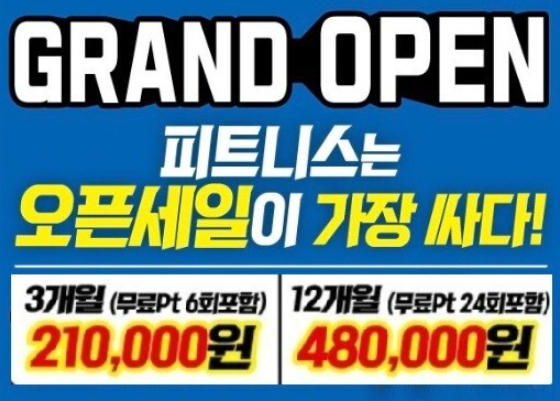 ex) 헬스장 오픈!! 최상의 시설 12개월 48만원 이렇게