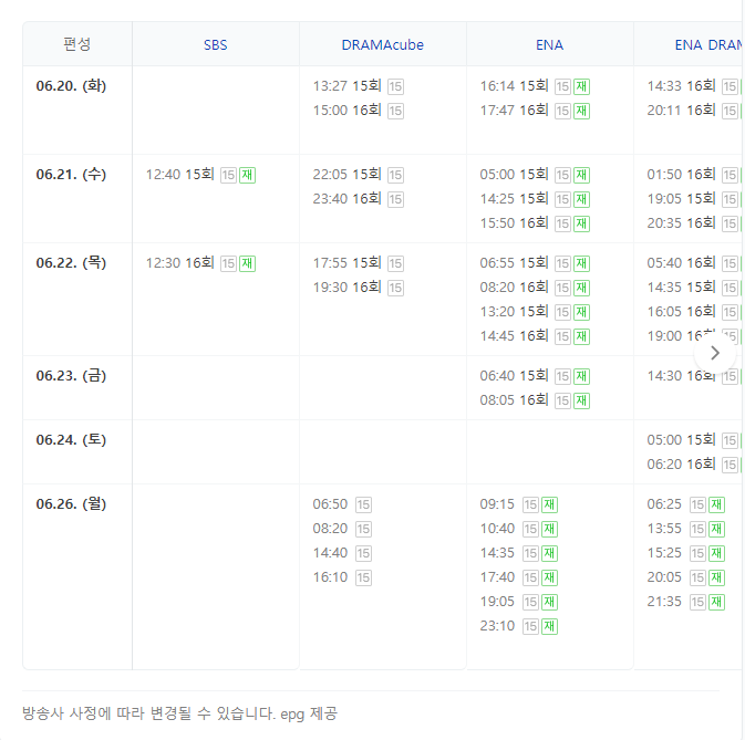 아래는 본방 시간표 되겠습니다